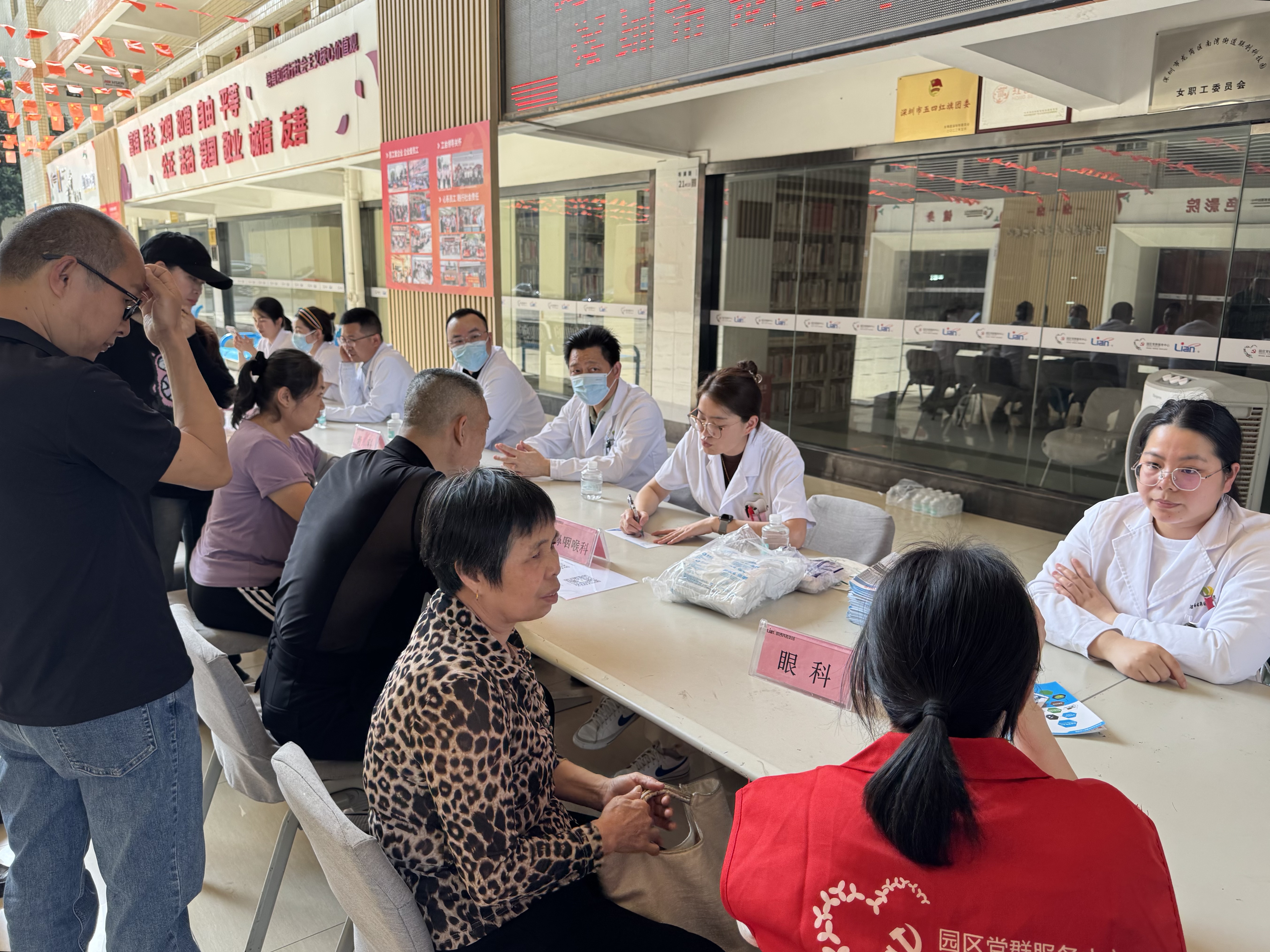 本次义诊特邀深圳市龙岗区第四人民医院消化内科、骨科、儿科、感染科、眼科、耳鼻咽喉科、妇产科及疼痛门诊等多科室专家团队现场坐诊,为园区员工及家属提供专业健康咨询与诊疗服务。活动吸引了众多员工积极参与,现场气氛热烈。